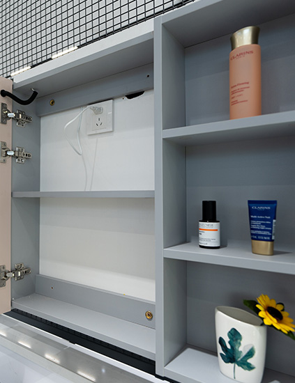 右側鏤空鏡櫃,擴容存儲空間,放取自由。